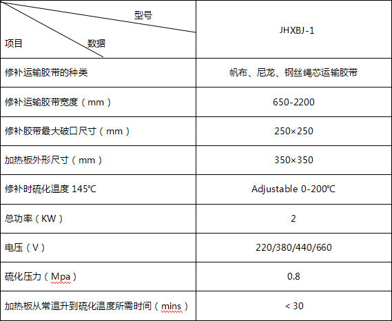膠帶輸送機(jī)在運(yùn)行過(guò)程中,由于物料的塊重,落差,以及設(shè)備故障等引起膠帶表面點(diǎn)狀損壞或洞穿,而使芯層外露,漏料,必須及時(shí)修理,使用本修補(bǔ)器,可在運(yùn)輸機(jī)停機(jī)后進(jìn)行膠帶表面的硫化修補(bǔ)。